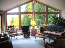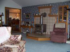 Comfortable chairs and sofas gather in a large open living room for your relaxation. Big picture windows look out to the country side and rolling hills beyond. Charming stuffed sheep are throughout the living quarters to carry The Shepherd's Inn theme with every room.